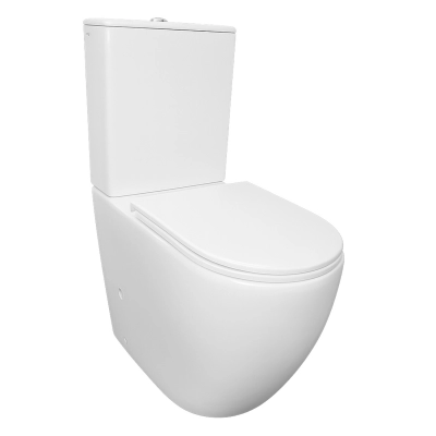 Унитаз-компакт безободковый WAVE PROMO гориз, нижн, 2-кн. арм, сид. дюропл, м/л, быстр, БЕЛЫЙ глянец