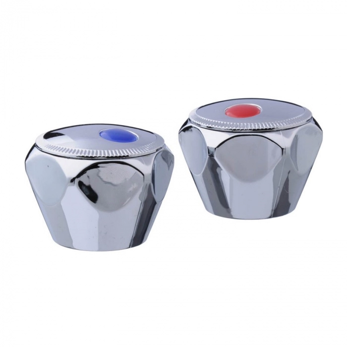 Интересный по внешнему виду маховик для смесителя PSM-04B-77 имеет квадратную форму штока с размерами 7 на 7 мм. Конструктивно модель отличается наличием шести граней для захвата и смещенным цветовым кругом. Данный маховик принято называть «Мария», что помогает отличить группу конструктивно схожих вентилей от прочих вариаций. Стандартная красно-синяя индикация потока воды является привычной и понятной.