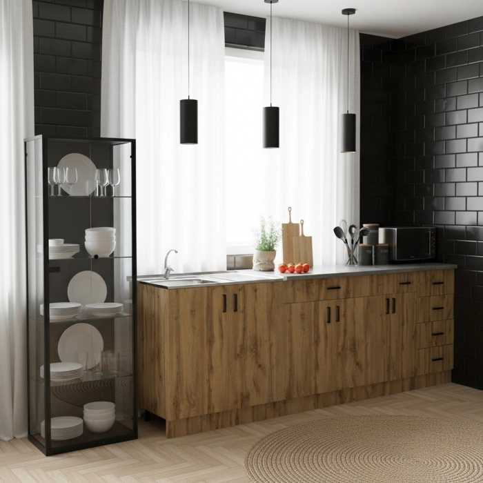 - Столешница глубиной 600 мм, высотой 28 мм (что совпадает с высотой накладной мойки)